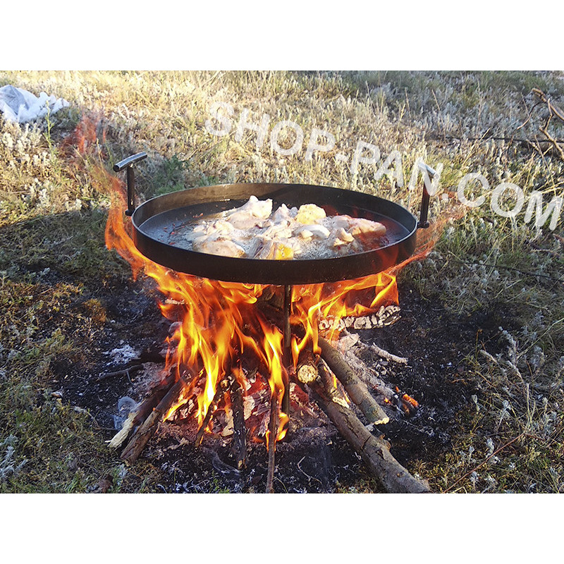 Сковорода з диска борони ідеально підходить для приготування картоплі, риби, сала, м'яса, грибів, овочів та інших страв на відкритому вогні. Її діаметр становить 30 см, що дає змогу комфортно готувати їжу для великої компанії. Завдяки спеціальному прожаренню поверхні до сковороди нічого не пригорає, а товщина сталі 4 мм забезпечує рівномірний нагрів. Сковорода оснащена знімними "Т"-подібними ручками та ніжками висотою 23 см, що робить її зручною у транспортуванні та використанні. Високі бортики 30 мм запобігають витіканню жирів і соків під час приготування. Чорний колір надає їй стильного вигляду. Ця сковорода стане незамінним помічником для любителів відпочинку на природі та справжніх гурманів.