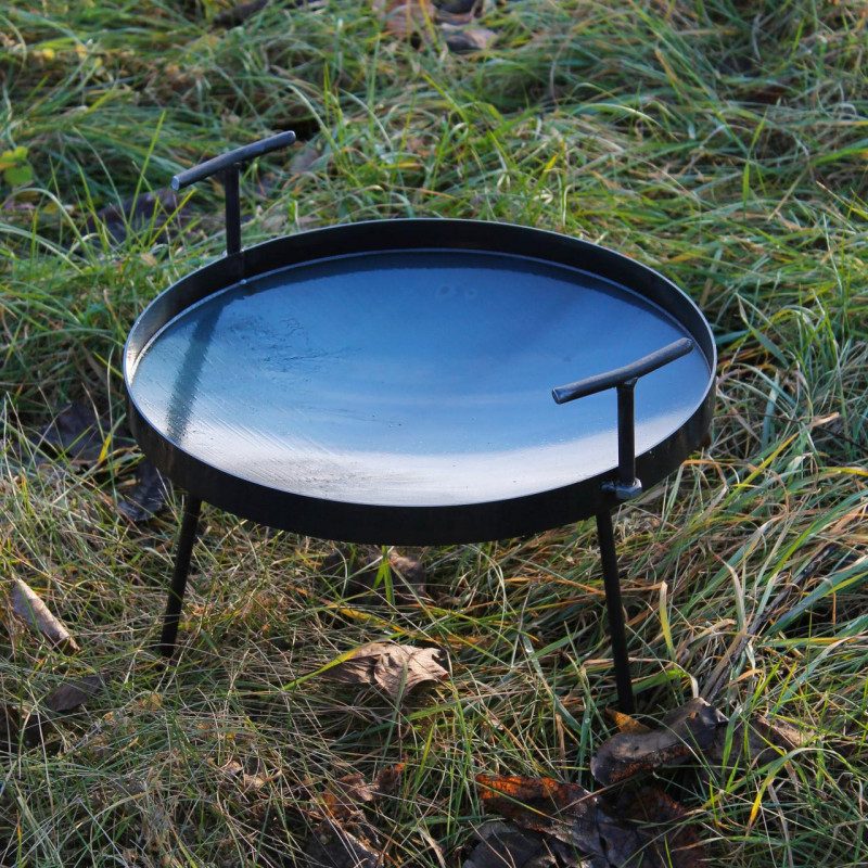 Сковорода с диска бороны – идеальное решение для любителей вкусно провести время на природе. Она подходит для приготовления разнообразных блюд, которые только пожелает ваша душа. Ее можно использовать как на ножках, так и на мангале. Поверхность сковороды имеет антипригарное покрытие и дополнительно прокалена, что делает ее готовой к использованию без доработок. Благодаря съемным Т-образным ручкам и ножкам сковороду легко транспортировать и хранить; она без проблем помещается в багажник автомобиля. Отлично подходит для охотников, рыболовов, любителей пикников и владельцев загородных домов. Несмотря на отсутствие чехла, его удобно носить с собой. В комплекте входят лопатка, ручки и ножки. Диаметр сковороды 500 мм, высота ножек 26 см, бортик 30 мм, толщина стали 4 мм, вес 8.5 кг. Гарантийный срок составляет 1 год.