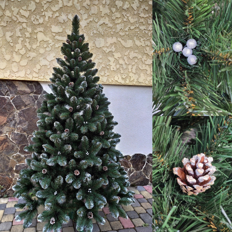 Ялинка штучна Кармен срібло з шишками і перлами 1.8 м