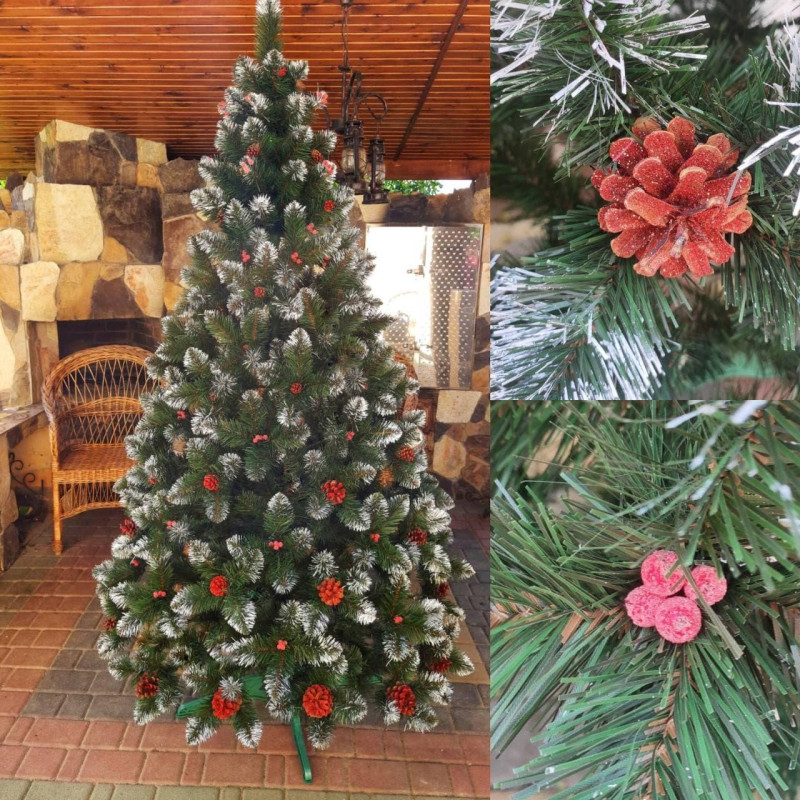 Ялинка штучна Кармен з калиною і шишками 2.2 м
