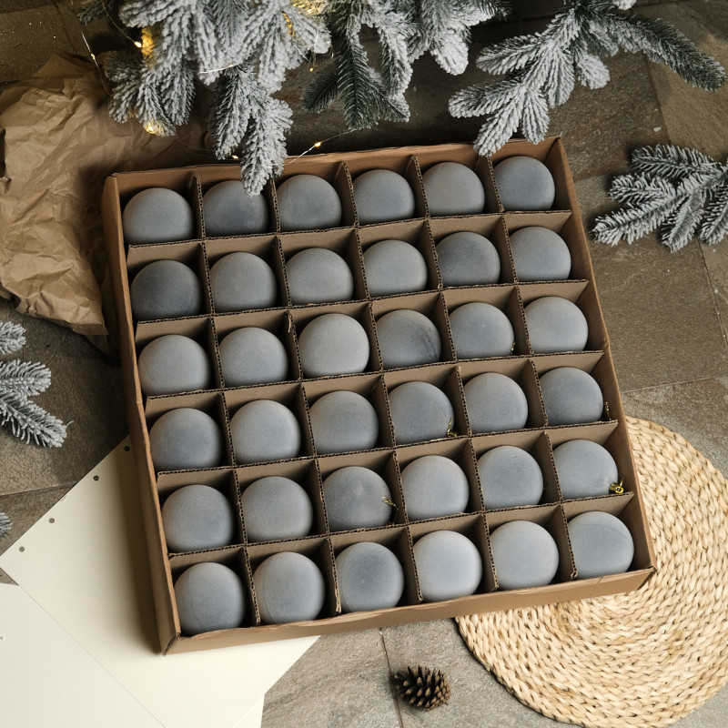 Набір новорічних шарів Оксамит D-8 см 18 шт. Сірий