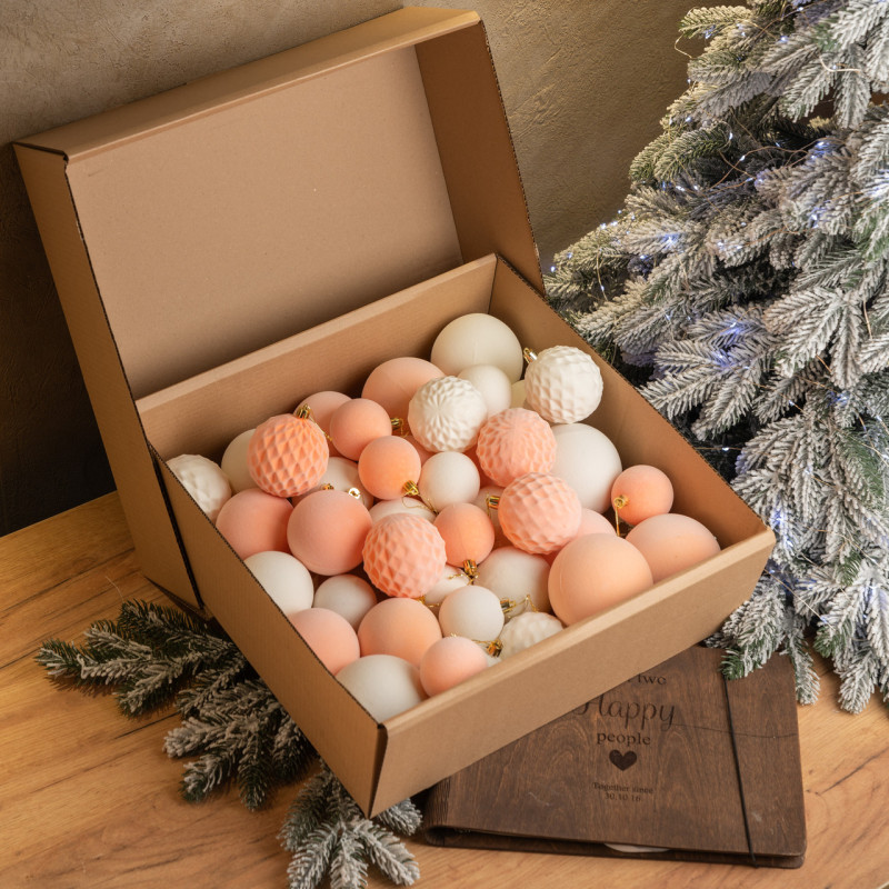 Набір іграшок ялинкових Оксамит 40шт Персиковий