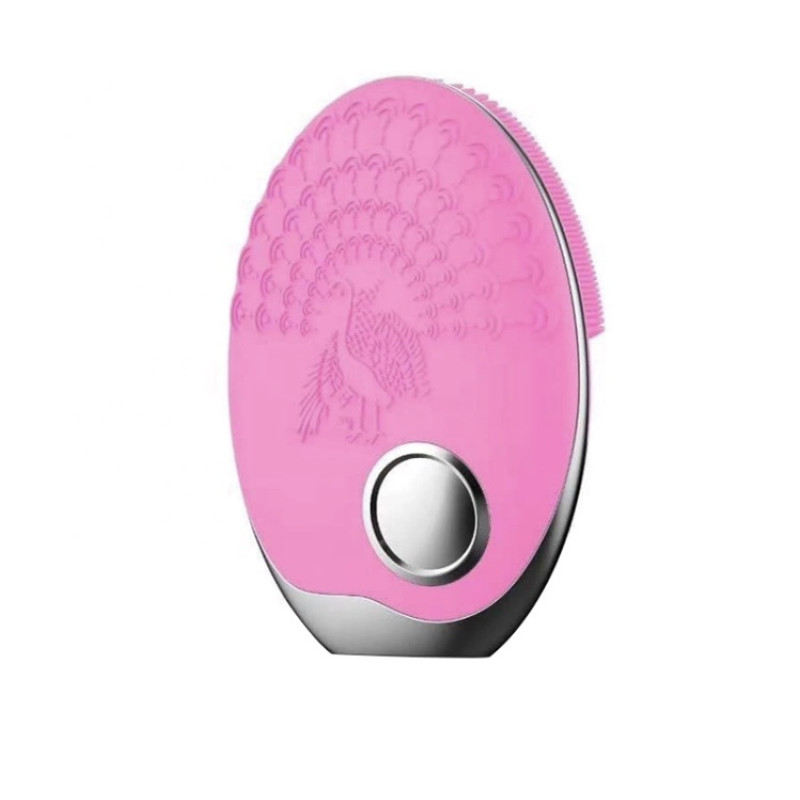 Ультразвуковая Электрическая Силиконовая Щетка Массажер Для Лица с Функцией Фототерапии Розовая