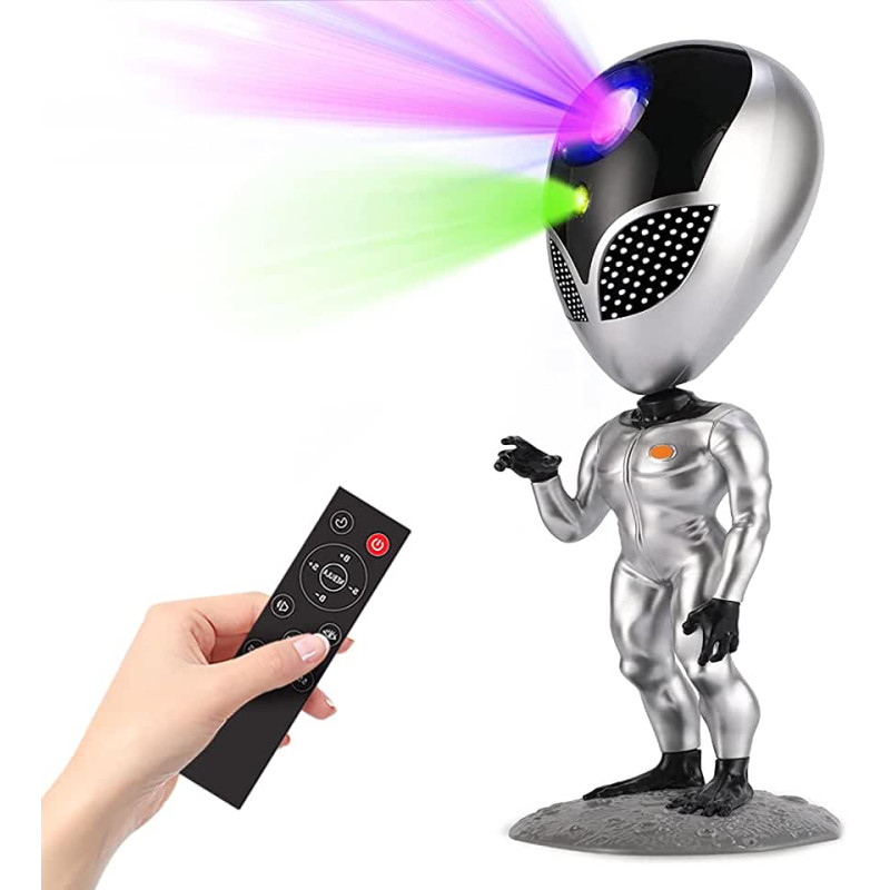 • Говорящий светильник инопланетянин также обладает дополнительными функциями, такими как встроенные звуковые эффекты и таймер. Зажав на пульте кнопку, можно произнести любую фразу, и он произнесет ее забавным и очень приятным голосом. Таймер позволяет автоматически выключать проектор, чтобы не беспокоиться о его работе.