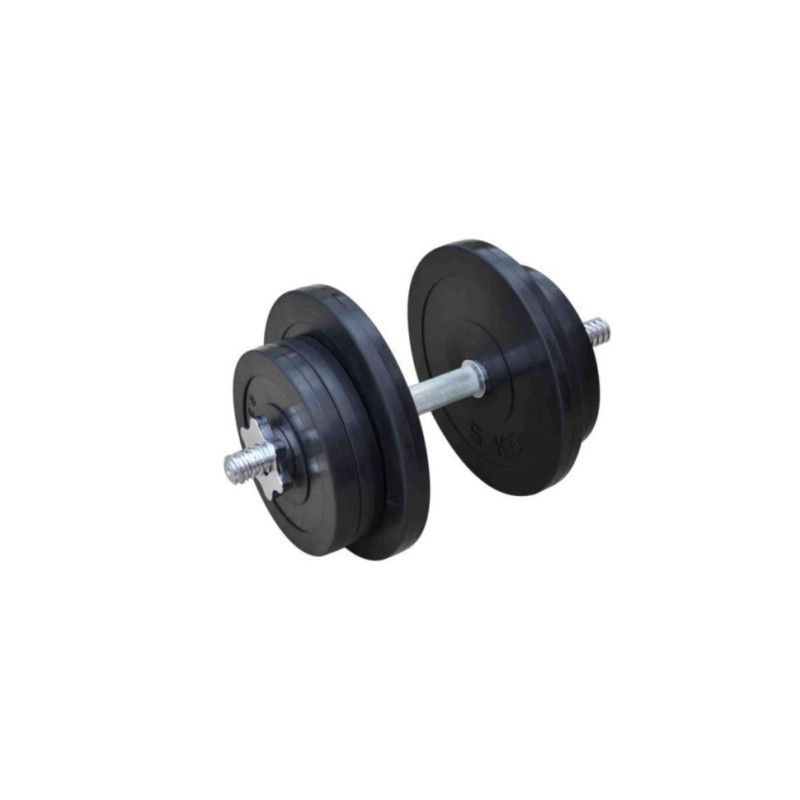 Гантель укомплектована различными весовыми дисками, что позволяет легко настраивать нагрузку под ваши потребности. Максимальная нагрузка на гриф составляет 60 кг, что делает её универсальной для разных уровней подготовки. Диски имеют амортизирующие свойства, что защищает пол от повреждений.