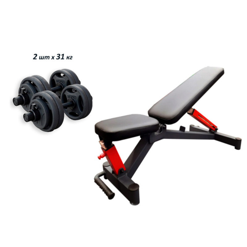 Проф. скамья для жима RN-Sport Black Rock + Гантели олимпийские RN-Sport по 31 кг металлические
