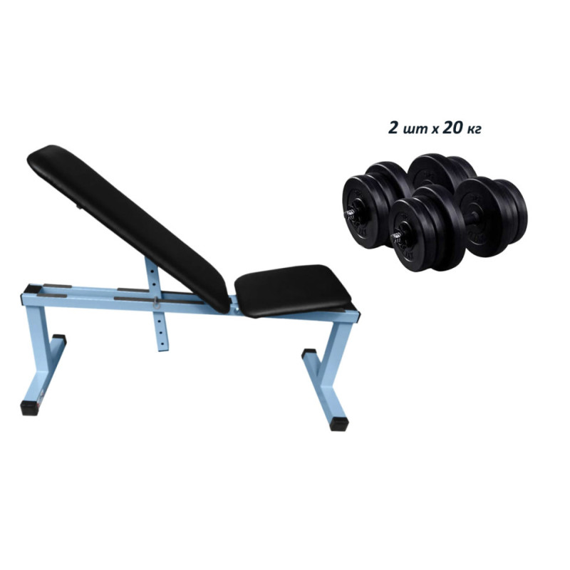 Скамья для жима лежа регулируемая универсальная + Гантели RN-Sport 2 по 20 кг с ABS-покрытием