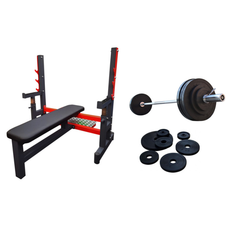 Скамья для жима RN classic prof + Олимпийская обрезиненная штанга 100кг