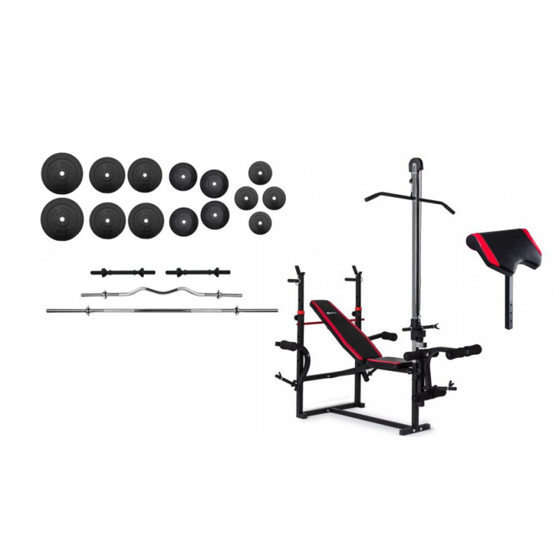 Этот набор позволяет выполнять широкий спектр упражнений благодаря продуманным техническим характеристикам: длина лавы составляет 167 см, ширина — 117 см, а высота регулируемых стоек варьируется от 97 до 127 см. Лава оснащена приставкой Скотта и брусьями для дополнительных возможностей тренировки. Высота тяги составляет 209 см с профилем тяги в 3,6 см.
