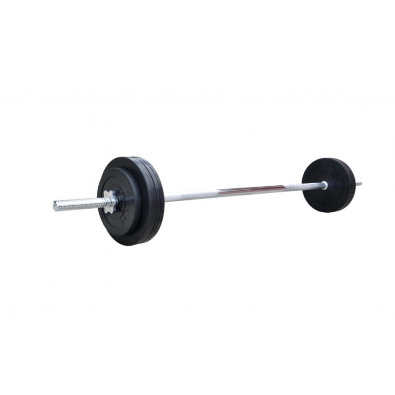 Штанга резиновая с прямым грифом на 50 кг от RN Sport — идеальный выбор для профессиональных и полупрофессиональных тренировок. Компактные стальные диски с резиновым покрытием обеспечивают комфортное использование как дома, так и в спортивных залах. Резина высокого качества без примесей предотвращает появление запаха, мазкости и повреждение напольного покрытия благодаря амортизационным свойствам. Гриф из стали с хромированным покрытием имеет насечку против скольжения, что обеспечивает надежный хват. Вес штанги может варьироваться от 50 до 80 кг благодаря различным комбинациям дисков: 2 по 2.5 кг, 4 по 5 кг, и 2 по 10 кг. Диски черного цвета имеют диаметр отверстия 31 мм, что соответствует диаметру грифа 30 мм. Зажимные гайки типа Вейдера добавляются для надежной фиксации. Максимальная нагрузка на гриф составляет 120 кг, длина грифа — 150 см, с зоной хвата 100 см и навесной зоной 25 см. Эта штанга не только функциональна, но и долговечна, благодаря чему будет радовать вас на протяжении длительного времени.