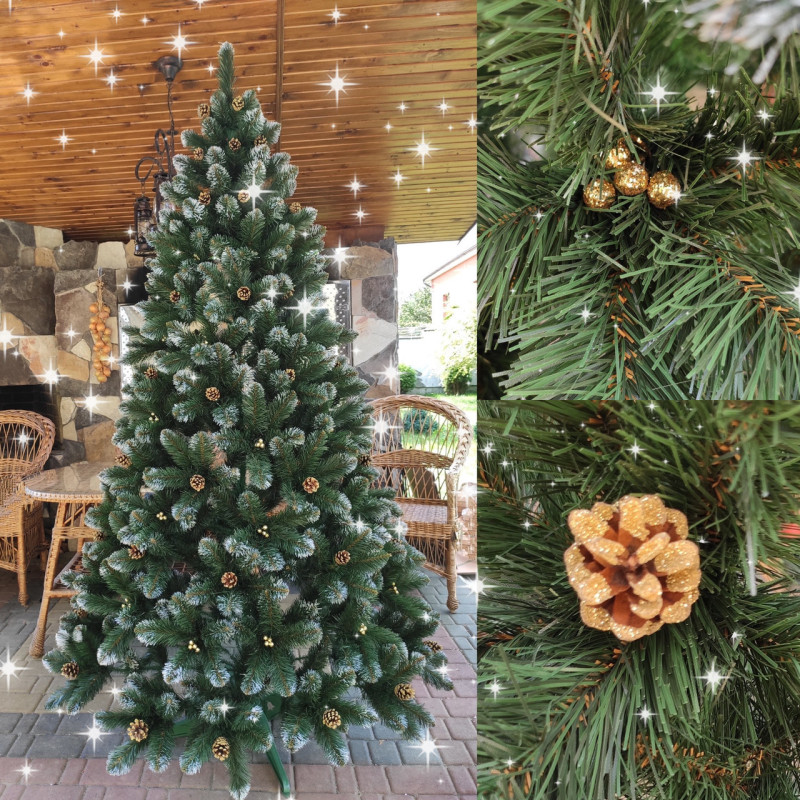 Ялинка штучна Кармен золото з шишками і перлами 2.2 м
