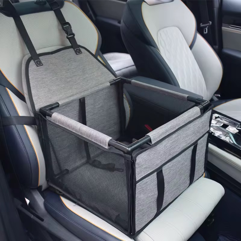 Сумка Переноска в Авто для Собак и Кошек Каркасная 12 Трубок Сиденье Автокресло Складное в Машину для Транспортировки Животных Серое