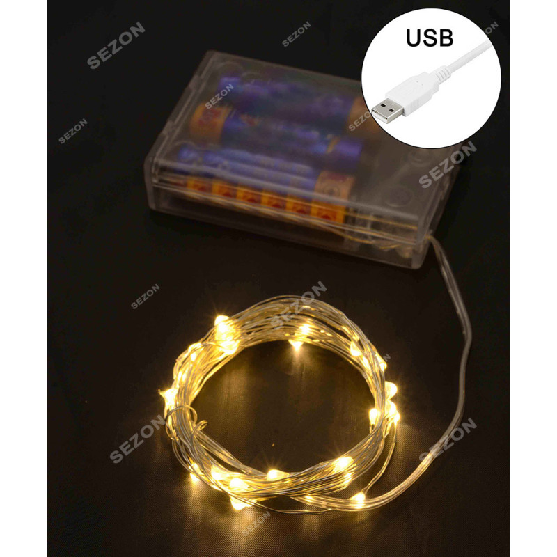 Новорічна світлодіодна гірлянда НА БАТАРЕЙКАХ РОСА 50LED 5м теплий білий