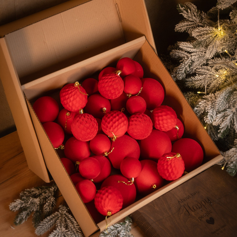 Набір іграшок ялинкових Оксамит 40шт Червоний