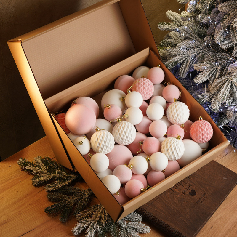 Набір іграшок ялинкових Оксамит 40шт Рожевий