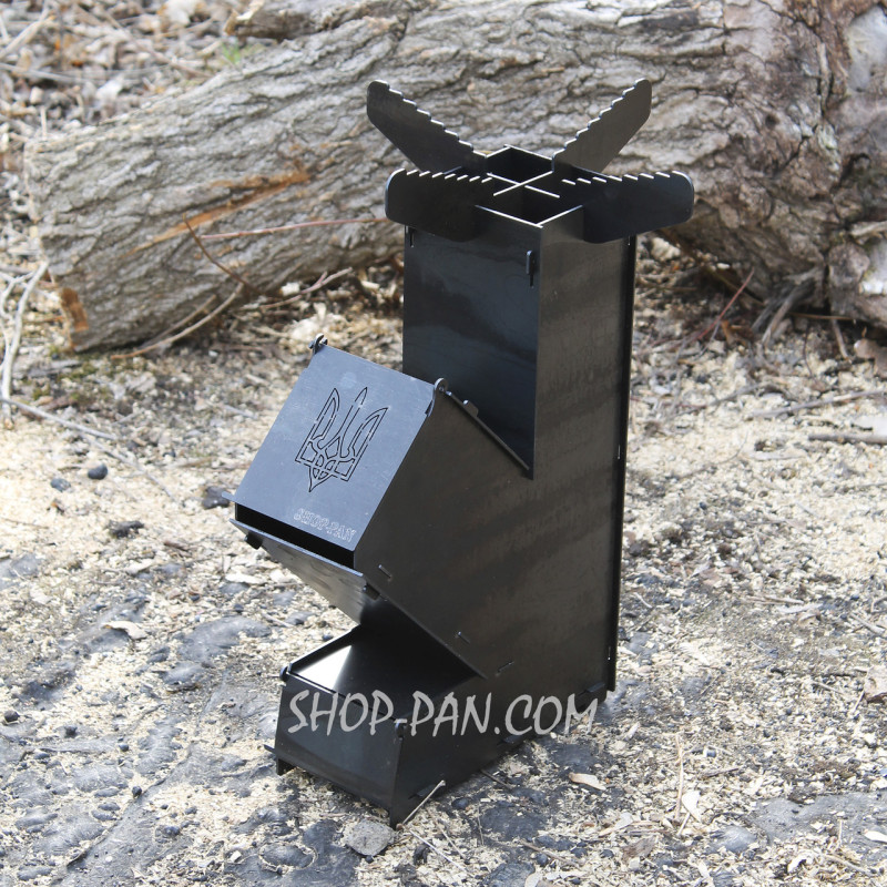 Эта турбо-печь станет идеальным выбором для туристов, охотников, рыбаков и всех, кто любит отдыхать на природе. Её смелый дизайн сочетается с возможностью быстрого и удобного приготовления любимых блюд на свежем воздухе. Конструкция изделия обеспечивает стабильный температурный режим, не требуя большого количества топлива.