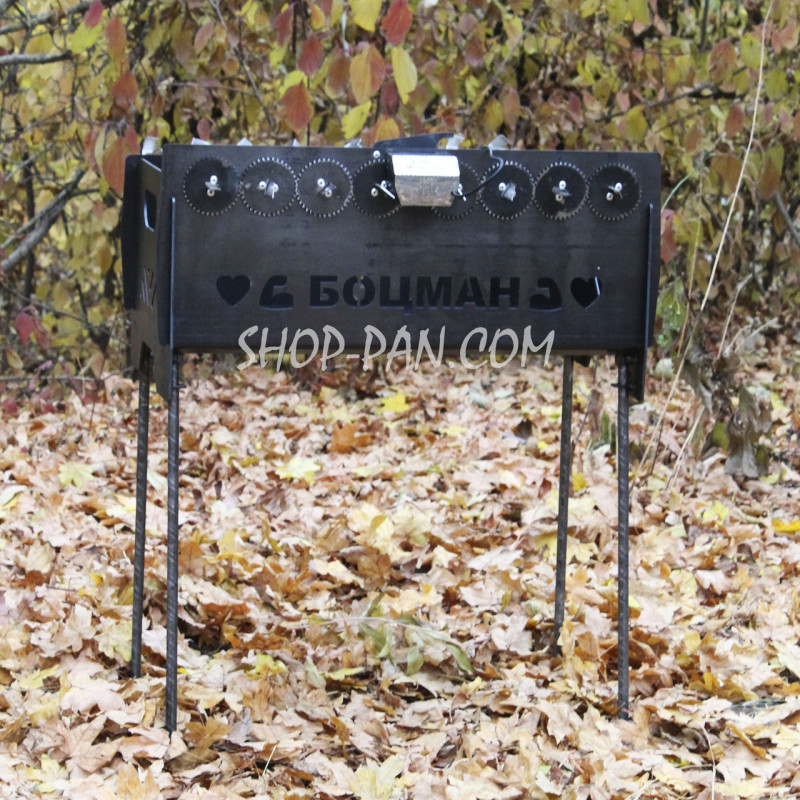 Мангал на длинных ножках со встроенной шашлычницей и мотором на 12 шампуров 3 мм