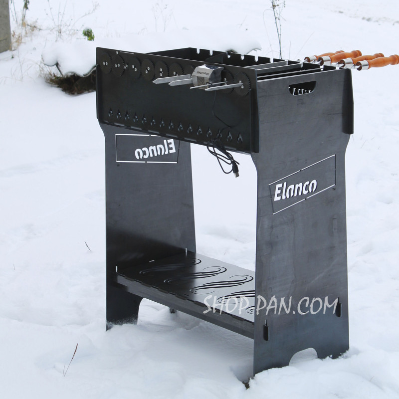Мангал разборный высокий со встроенной шашлычницей и мотором на 10 шампуров