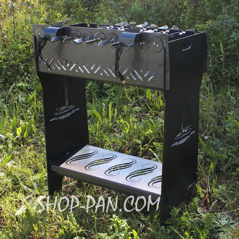 Мангал разборный высокий со встроенной шашлычницей и мотором на 12 шампуров
