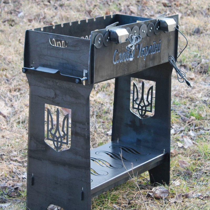 Мангал со встроенной шашлычницей и мотором на 10 шампуров с регулировкой высоты дна относительно шампуров