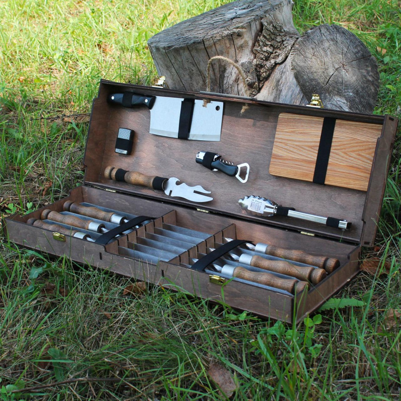 Набор для гриля и барбекю "Кедр" в кейсе из фанеры