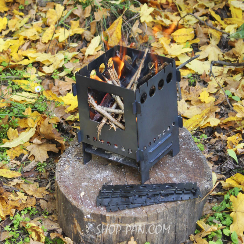 Компактная разборная печь из металла толщиной 2 мм идеально подходит для разогрева пищи или жидкости в любых условиях при минимальном количестве щепок. Благодаря стальной топке, она обеспечивает надежность и долговечность. Выносная топка позволяет удобно использовать печь в полевых условиях. В собранном виде печь имеет компактные размеры 22 см в высоту и 15х15 см в ширину и длину, что делает ее удобной для транспортировки. Весит конструкция всего 2 кг, что упрощает ее переноску. Особенностью печи является простота монтажа и демонтажа, что позволяет быстро подготовить ее к использованию.