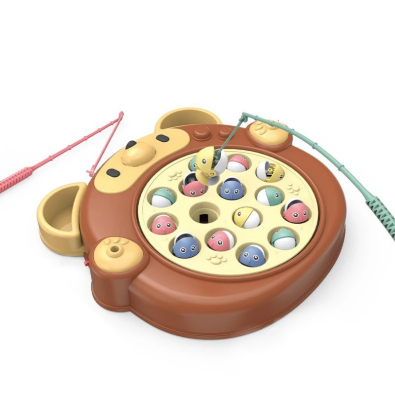 Детская Интерактивная Монтессори Игрушка на Двоих Музыкальная Рыбалка Развивающая 2 Удочки 15 Рыбок Коричневая