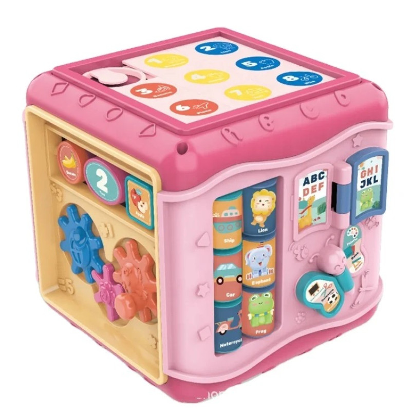 Детская Развивающая Игрушка Сортер Монтессори Интерактивный Бизикуб Розовый