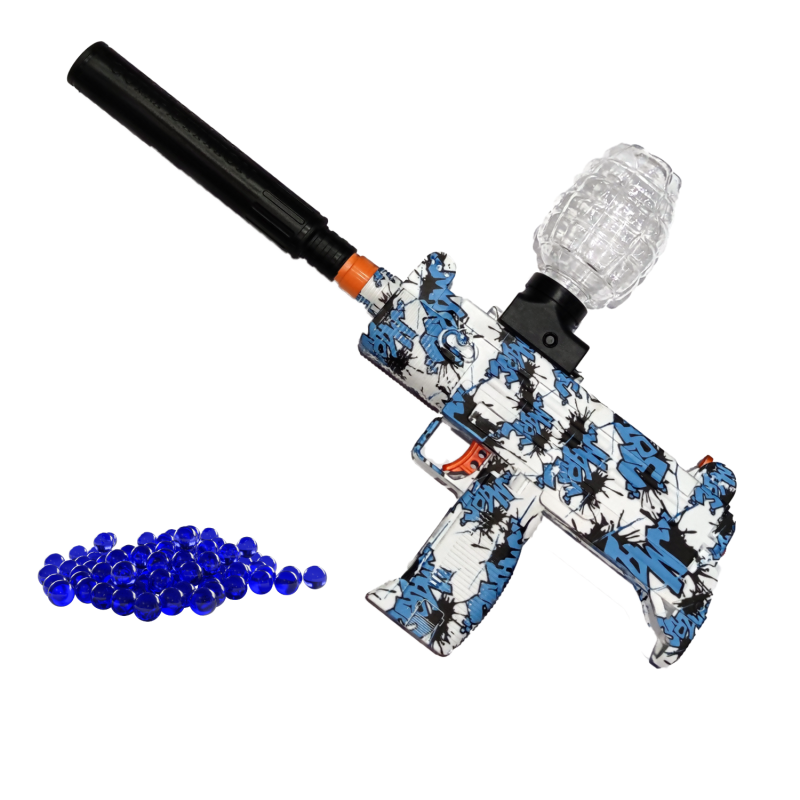 Детское Игрушечное Оружие с Гелевыми Шариками Орбиз Автоматический Гель Бластер на Аккумуляторе Пистолет Пулемет UZI с Глушителем + 5000 Шариков