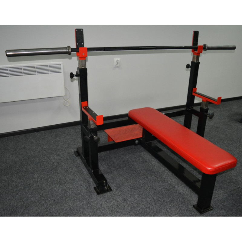 Тренажер RN Sport - це професійне обладнання для жиму, оснащене стійками, що ідеально підходить для будь-якого тренажерного залу. Він розрахований на вагу обтяжень до 500 кг і не має обмежень по вазі користувача. Конструкція тренажера виконана з міцної профільної труби, що забезпечує надійність і довговічність. Сидіння виготовлене з фанери товщиною 15 мм, а наповнювач - двошаровий пінополіуретан, оббитий високоякісною штучною шкірою, що стійка до усадки. Завдяки можливості індивідуального замовлення кольору оббивки та фарбування, тренажер легко впишеться в будь-який інтер’єр. Вага тренажера становить 75 кг, а його розміри - 130 * 120 * 120 см. Основний колір представлений у червоному варіанті. Особливістю моделі є регулювання стійок, що підвищує комфорт під час тренувань.