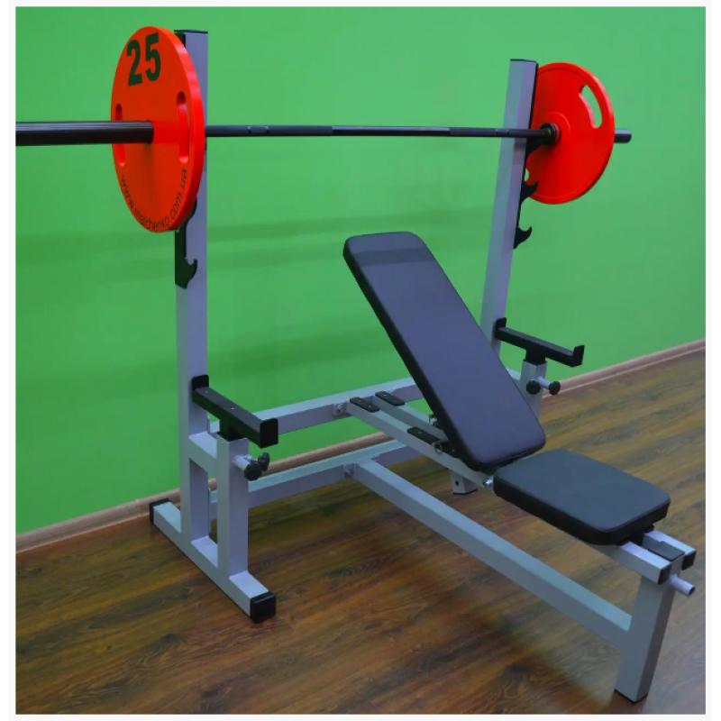 Лавка «Стандарт Олімпійський» зі страховкою від RN Sport — це першокласне професійне обладнання для тренажерних залів. Вона призначена для виконання базових силових вправ, таких як жим штанги лежачи, а також підходить для занять з гантелями. Завдяки спеціальній жорсткій конструкції, лавка забезпечує стабільну опору без люфту, навіть при піднятій спинці. Вбудовані стійки для штанги дозволяють зібрати єдину конструкцію, що витримує навантаження до 300 кг.